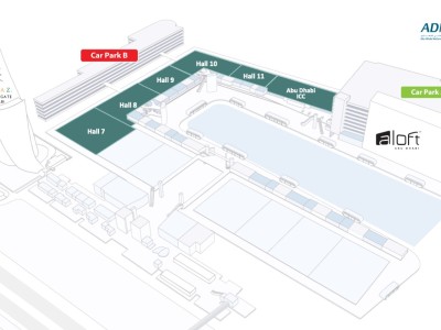 يقع موقف سيارات (E) بالقرب من قاعة أدنيك المارينا ويسهل منه الوصول إلى قاعة المارينا. يقع المدخل مباشرة بعد قاعة المارينا عند شارع الخليج العربي.