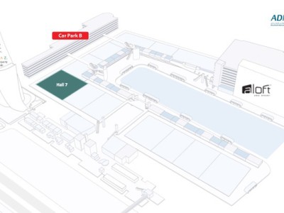 يقع موقف سيارات (E) بالقرب من قاعة أدنيك المارينا ويسهل منه الوصول إلى قاعة المارينا. يقع المدخل مباشرة بعد قاعة المارينا عند شارع الخليج العربي.