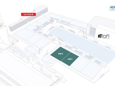 يقع موقف سيارات (E) بالقرب من قاعة أدنيك المارينا ويسهل منه الوصول إلى قاعة المارينا. يقع المدخل مباشرة بعد قاعة المارينا عند شارع الخليج العربي.
