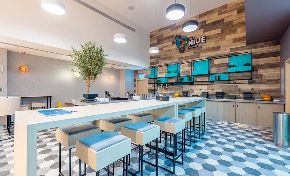 توفّر منصّة الابتكار (The Hive) للاجتماعات، الفائزة بجوائز عديدة، لعملائها وشركائها مساحةً للابتكار والتواصل وتبادل الأفكار الإبداعية. تم تصميمها بأسلوب يحفز الابتكار ويشجع على تطوير الأفكار وتعزيز التواصل وتوفير مساحة إبداعية ملهمة تتيح الفرصة للمشاركين للوصول إلى آفاق فكرية جديدة، والابتكار والتعاون بين الزملاء في محيط مريح ومثالي للاجتماعات، وورش العمل، وجلسات التدريب.