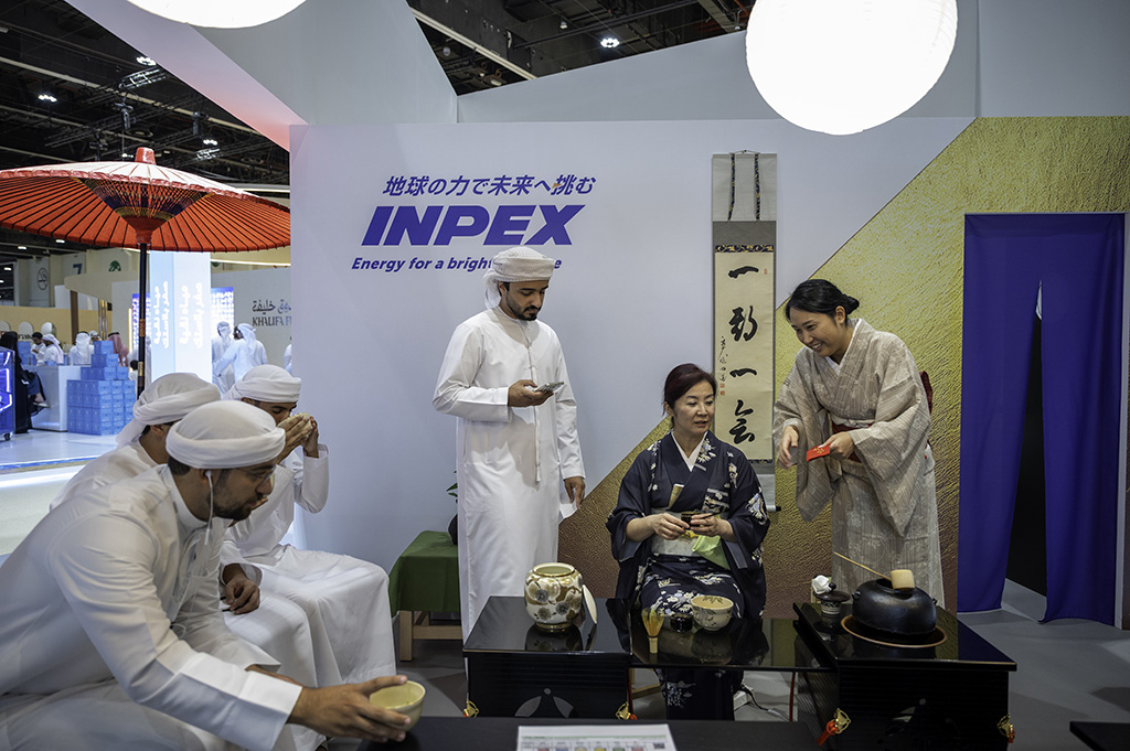 ADIHEX features significant international participation, including 63 exhibitors and brands from Japan. The INDEX stand showcases traditional Japanese culture with displays such as falconry shows, falconry equipment making, tea ceremonies, and musical performances. At the INPEX stand, Mr. Shinsuke Ohwaku demonstrates the crafting process of the Japanese Katana sword, highlighting the multiple stages required to achieve perfection. Additionally, the stand presents Amezaiku, the Japanese folk art of sculpting candy into various animal shapes and characters, led by master artist Takahiro Mizuki.