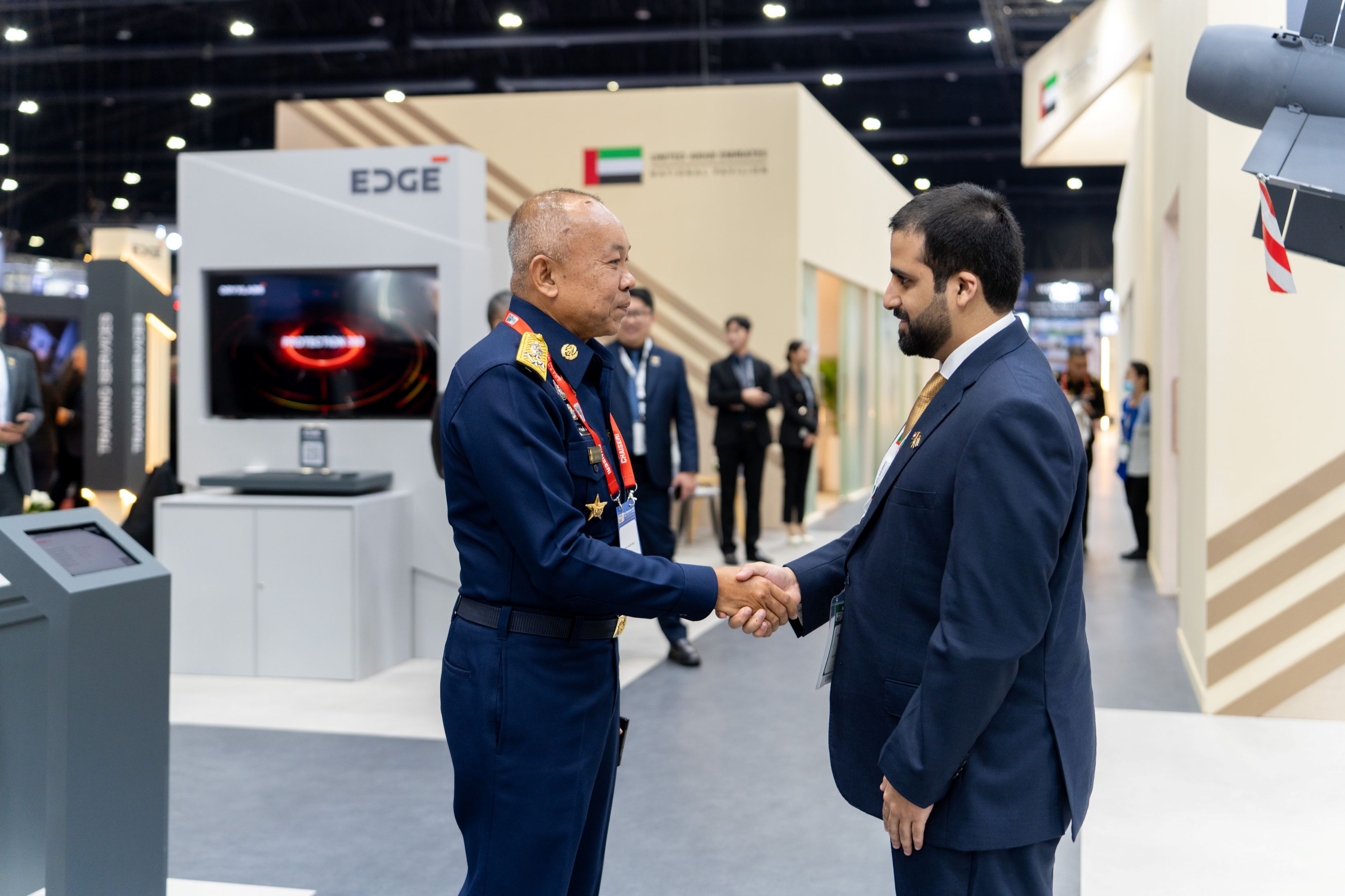 With a 3D design visible to all visitors throughout the UAE Pavilion, EDGE Group showcased its defence solutions across eight distinct areas, including precision-guided munitions, air platforms, weapons & munitions, secure communications, electronic warfare, AI sensors, cyber defence, and training & services. With product designers present at the event, visitors were able to gain detailed insights into various defence solutions capabilities and applications of UAE designed products.